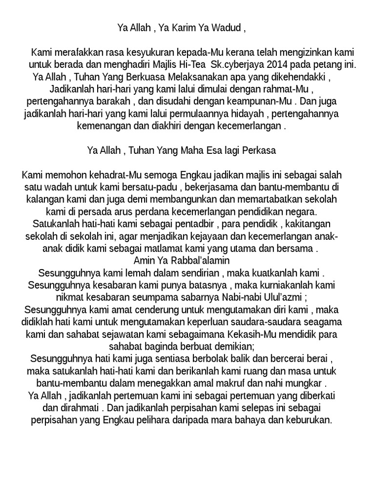 Majlis aqiqah Cukur jambul Hari jadi Doa selamat bertunang Majlis Hi-Tea Jamuan Pejabat hidangan yg menarik adalah seperti. Pembaca Doa Keperluan pembaca doa adalah tertakluk kepada panduan bacaan doa yang telah diluluskan dalam Muzakarah. Contoh Bina Ayat Form 4.